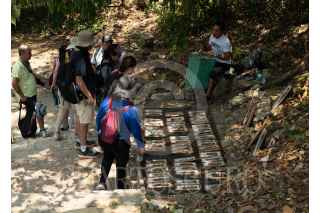 PALENQUE, CHIAPAS, 13ABRIL2024.- Artesanos de la Zona Arqueológica de Palenque se encuentran a la expectativa sobre el futuro del trabajo que por años han realizado, debido a la construcción del Tren Maya y los proyectos a su alrededor. Las y los artesanos fueron informados de un reacomodo en el nuevo Centro de atención al Visitantes CATVI, ubicado a más de un kilómetro de la entrada principal a la Zona Arqueológica. Lo que ha desatado preocupación ya que ahora es muy fácil el contacto con los turistas y piensan que en el nuevo sitio será difícil la venta de sus artesanías. FOTO: ISABEL MATEOS/CUARTOSCURO.COM