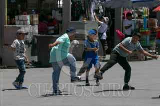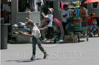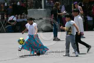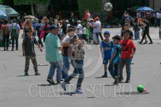 CIUDAD DE MÉXICO, 14ABRIL2024.- Niños y niñas juegan una cascarita de fútbol en el Zócalo, sitio en el que avanza el proyecto de su peatonalización. Autoridades capitalinas han señalado que este plan tiene como objetivo que los paseantes tengan un mejor experiencia en recorrer uno de los sitios de reunión por excelencia de la Ciudad de México. FOTO: MOISÉS PABLO/CUARTOSCURO.COM