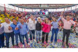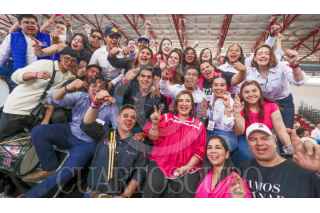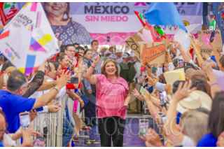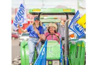 CAMARGO, CHIHUAHUA, 14ABRIL2024.- Xóchitl Gálvez, candidata a la presidencia de México por la coalición Fuerza y Corazón por México llegó a Camargo y fue recibida por 300 tractores y cientos de agricultores de la región. Fue en la entrada norte de Camargo, donde la panista bajó del XochiBus y decidió subirse a un tractor, para comenzar una caravana desde este punto hasta el poliforo municipal Víctor Valles Arrieta, sitio en el que ofreció un mensaje. FOTO: PRENSA XÓCHITL GÁLVEZ/CUARTOSCURO.COM