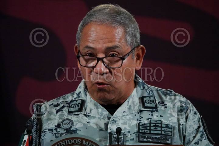 CIUDAD DE MÉXICO, 16ABRIL2024.- David Córdova Campos, comandante de la Guardia Nacional, durante la conferencia de prensa matutina desde Palacio Nacional. FOTO: GALO CAÑAS/CUARTOSCURO.COM
