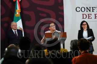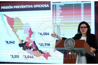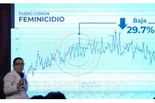 CIUDAD DE MÉXICO, 16ABRIL2024.- Rosa Icela Rodríguez , secretaria de Seguridad Pública y Protección Ciudadana, muestra la gráfica donde afirma la reducción en el delito de feminicidio durante la conferencia de prensa matutina desde Palacio Nacional. FOTO: GALO CAÑAS/CUARTOSCURO.COM