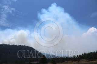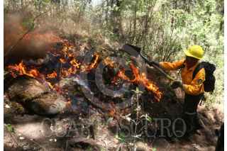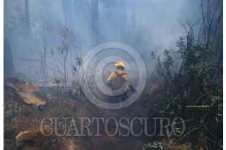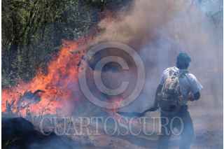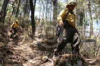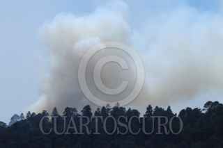 HUITZILAC, MORELOS, 16ABRIL2024.- Un incendio forestal que inicio desde el viernes afecta a cientos de hectáreas del Bosque de Agua. Desde ese día, decenas de comuneros de San Juan Atzingo y de Huitzilac acompañados de brigadas de la Comisión Nacional Forestal y de la secretaria de Desarrollo Sustentable del gobierno de Morelos, combaten al fuego que se localiza en el centro del Bosque de Agua. El fuego ya ha consumido pastizales y árboles, incluso algunos cerros ya se encuentran totalmente quemados. Presuntamente este incendio fue provocado. La conflagración afecta a bosques de los estados de México, Morelos, y la Ciudad de México. FOTO: MARGARITO PÉREZ RETANA/CUARTOSCURO.COM