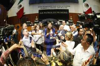 CIUDAD DE MÉXICO, 16ABRIL2024.- Las senadoras panistas Kenia López Rabadán, Lilly Téllez, y Alejandra Reynoso Sánchez, dieron una rueda de prensa luego de los partidos de oposición (PAN, PRD, PRI, y Grupo Plural) abandonaron la sesión para evitar la discusión de las reformas a las leyes de Amnistía y Amparo. Las parlamentarias señalaron que cambiar estas leyes "constituyen un grave retroceso en la protección de derechos humanos". FOTO: CUARTOSCURO.COM