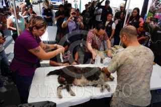 CIUDAD DE MÉXICO, 16ABRIL2024.- Tras la exposición por acumulación de gas que dejo el saldo de al menos 4 personas lesionadas y el colapso de una vivienda, equipos de emergencia rescataron a más de 5 perros que fueron atendidos en el lugar. En este sentido vecinos de la zona afectada apoyados por el gobierno de la ciudad y de la alcaldía colocaron carpas de ayuda a la comunidad. FOTOS: ROGELIO MORALES /CUARTOSCURO.COM