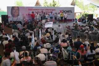 YECAPIXTLA, MORELOS, 17ABRIL2024.- Xóchitl Gálvez, candidata a la presidencia por la Coalición Va por México durante enciento con liderazgos de Morelos que se llevó a cabo en las cabañas de los alamos. FOTO: ANDREA MURCIA /CUARTOSCURO.COM