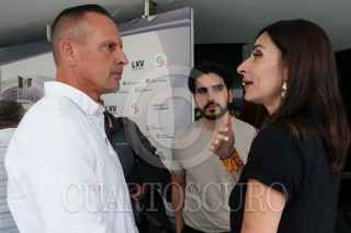 CIUDAD DE MÉXICO, 17ABRIL2024.- El activista Bryan LeBarón conversa con la senadora de MC Laura Ballesteros tras una conferencia en la Cámara de Senadores. FOTO: GALO CAÑAS/CUARTOSCURO.COM