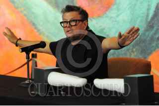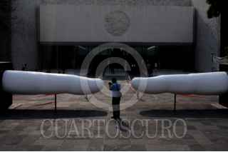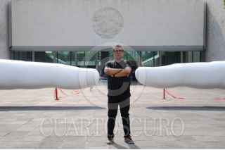 CIUDAD DE MÉXICO, 17ABRIL2024.-Una persona le toma una fotografía a la escultura de Rivelino, "Tú". FOTO: DANIEL AUGUSTO /CUARTOSCURO.COM