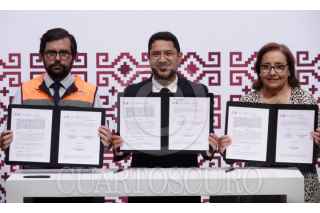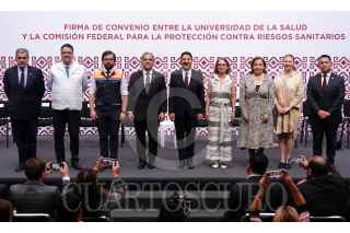 CIUDAD DE MÉXICO, 18ABRIL2024.- Martí Batres, jefe de Gobierno de la Ciudad de México, en compañía de: Alejandro Svarch, Comisionado Federal para la. Protección Contra Riesgos Sanitarios (COFEPRIS), y María de Lourdes Rojas, Directora General de la Universidad de la Salud, encabezó la firma del convenio específico de Colaboración entre COFEPRIS y la Universidad de la Salud. FOTO: GALO CAÑAS/CUARTOSCURO.COM