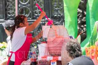 CIUDAD DE MÉXICO, 18ABRIL2024.- Vendedora de aguas frescas en las inmediaciones del Bosque de Chapultepec. Los capitalinos buscan como mitigar el calor con estas bebidas artesanales. FOTO: MOISÉS PABLO/CUARTOSCURO.COM