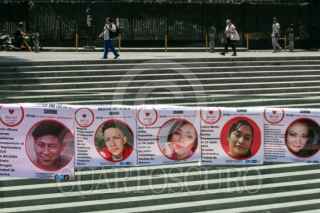 CIUDAD DE MÉXICO, 18ABRIL2024.- María Herrera; quien busca a sus cuatro hijos Raúl, Jesús Salvador, Gustavo y Luis Armando Trujillo Herrera, durante la conferencia de prensa en la cual estuvieron presentes diversos colectivos de personas desaparecidas para anunciar la Jornada Nacional de Búsqueda Humanitaria, que se llevará cabo del 19 al 20 de abril, en donde se movilizarán las diferentes organizaciones que se dedican a la búsqueda de sus seres queridos en todo el país. La conferencia se realizó en la Estela de Luz que señalaron, es la representación de la corrupción de los gobiernos que han demeritado los esfuerzos para que ellos con sus recursos localicen a sus seres queridos. FOTO: MOISÉS ´PABLO/CUARTOSCURO.COM