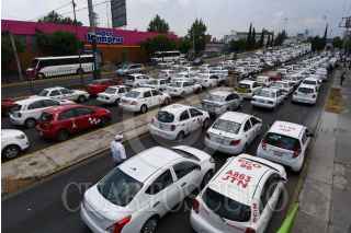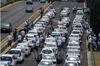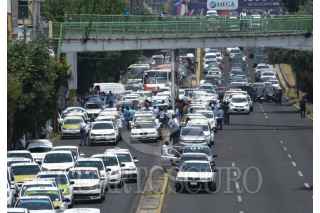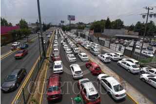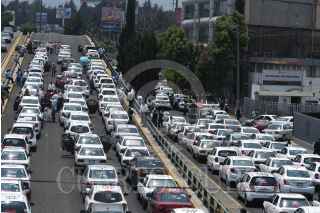 TOLUCA, ESTADO DE MÉXICO, 18ABRIL2024.- Taxistas de diversos municipios del Estado de México bloquearon Paseo Tollocan en la zona de la Terminal, en donde se encuentra la Secretaría de Movilidad, tomaron los carriles de baja y alta velocidad exigiendo se detengan los operativos que se han implementado por la SEMOV para supervisar los papeles de los choferes. FOTO: CRISANTA ESPINOSA AGUILAR /CUARTOSCURO.COM