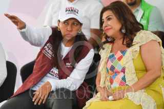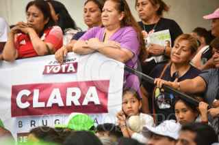 CIUDAD DE MÉXICO, 18ABRIL2024.- Vecinos de la Colonia Arenal Puerto Aéreo, observan la asamblea informativa de Clara Brugada, candidata a la Jefatura de Gobierno por la coalición Sigamos Haciendo Historia, realizada en la Plaza Cívica Recreativa Benita Galeana. FOTO: MARIO JASSO/CUARTOSCURO.COM