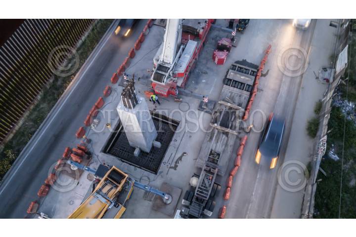 TIJUANA BAJA CALIFORNIA, 19ABRIL2024. Después del cierre total de la Avenida Internacional en un horario nocturno , derivado de la construcción de la obra de El Viaducto Elevado de Tijuana, fue colocada durante del miércoles la primera columna. Esta columna se llevó al lugar ya prefabricado y se colocó a la altura de la colonia Castillo, con base en los trabajos que se han realizado por meses en la Avenida Internacional. La obra cargo de la Secretaría de la Defensa Nacional contempla 10.5 kilómetros de longitud y hasta el momento tienen un avance del 16.3% El proyecto tendrá un ajuste debido a las condiciones de la tierra en el Cañón del Matadero y las casas que se ubican en el fraccionamiento La Isla y el Mirador, esto para buscar una forma de no afectar las viviendas ya establecidas "La SIDURT ya entrego una propuesta y está siendo revisada por la Sedena para realizar un puente y no un túnel en la entrada a Playas, antes del acceso al Mirador, señalo el Secretario de SIDURT, Arturo Espinoza, durante la mañanera de Baja California de este miércoles. El presidente Andrés Manuel López Obrador, mencionó durante la mañanera que el retraso del viaducto elevado fue debido a la liberación del derecho de vía, agregó que esta será la obra que más costara terminar, pero se está procurando terminarla antes de que termine su mandato. FOTO: OMAR MARTÍNEZ/CUARTOSCURO.COM