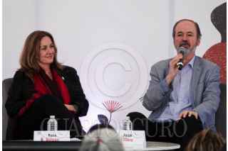 CIUDAD DE MÉXICO, 19ABRIL2024.- Rosa Beltrán, titular de Difusión Cultura de la Universidad Nacional Autónoma de México (UNAM), y el escritor Juan Villoro encabezaron la mesa inaugural de la edición 2024 de la Feria del Libro y la Rosa en el Centro Cultural Universitario (CCU). FOTO: GALO CAÑAS/CUARTOSCURO.COM