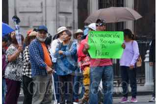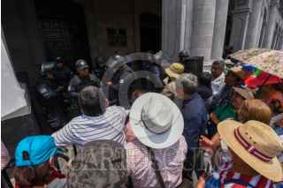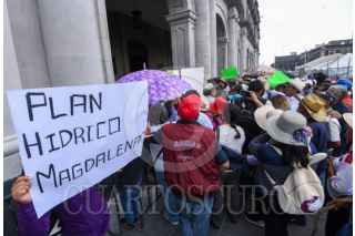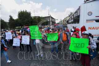 TOLUCA, ESTADO DE MÉXICO, 19ABRIL2024.- Pobladores de la Magdalena Chichicaspa en Huixquilucan se manifestaron en Palacio de Gobierno exigiendo la creación de un Plan Hídrico Comunitario ante la escasez de agua que existe en la zona, con la construcción de la autopista Toluca-Naucalpan afectaron los manantiales que surtían agua en esta zona. FOTO: CRISANTA ESPINOSA AGUILAR /CUARTOSCURO.COM