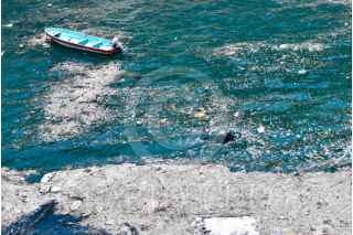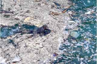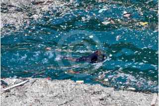 ACAPULCO, GUERRERO, 20ABRIL2024.- Un buzo nada entre una capa espesa de basura, que flota en la playa La Angosta de Acapulco. FOTO: CARLOS ALBERTO CARBAJAL/CUARTOSCURO.COM