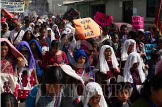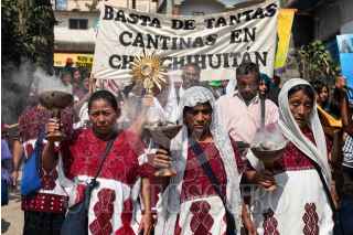 CHALCHIHUITAN, CHIAPAS, 20ABRIL2024.- Decenas de integrantes del pueblo creyente de la región peregrinaron por la cabecera municipal para exigir paz en sus comunidades. El incremento en la apertura de cantinas en la demarcación ha generado el alcoholismo en los jóvenes, también estas sirven como fachadas de narcomenudeo donde la principal droga que se introduce al mercado de las comunidades es el cristal, que ha llevado a jóvenes y adultos a perder la vida. FOTO: ISABEL MATEOS /CUARTOSCURO.COM