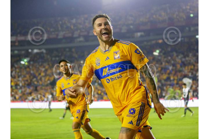 SAN NICOLÁS DE LOS GARZA, NUEVO LEÓN, 20ABRIL2024.- André-Pierre Gignac de Tigres, festeja el gol ante el Necaxa, en el estadio Universitario, partido correspondiente a la jornada 16 de la Clausura 2024 de la Liga MX. Marcador Final: Tigres: 5 - Necaxa: 2. FOTO: GABRIELA PÉREZ MONTIEL / CUARTOSCURO.COM