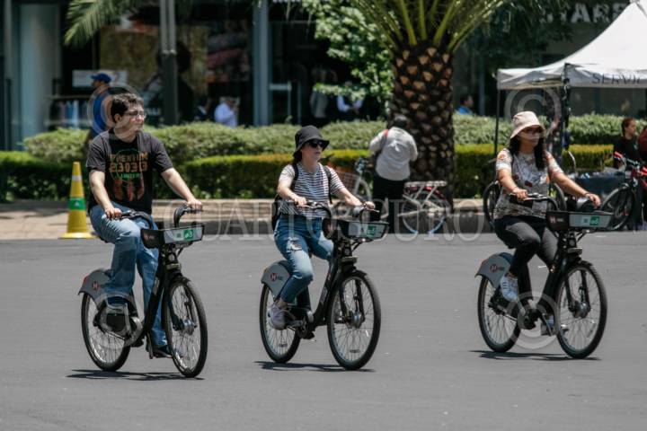 CIUDAD DE MÉXICO, 21ABRIL2024.- Capitalinos en patines, corriendo o en bicicleta disfrutaron del Paseo Ciclista en Reforma. Esto a pesar de la alerta amarrilla que se activo en varias alcaldías por las altas temperaturas. FOTO: MOISÉS PABLO/CUARTOSCURO.COM