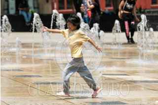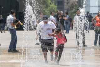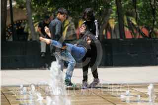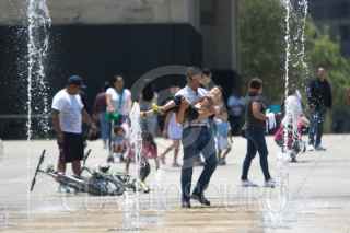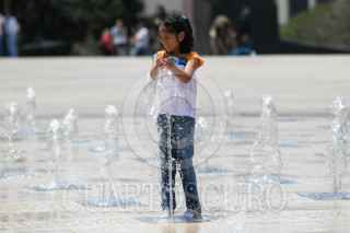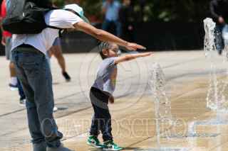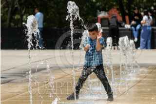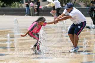 CIUDAD DE MÉXICO, 21ABRIL2024.- El gobierno capitalino ha lanzado varias alertas amarillas por las altas temperaturas en varias alcaldías de la capital, esto a pesar de que en los últimos dos días ha llovido un poco. Sin embargo este domingo niños y padres de familia se divirtieron mojándose en la fuente seca del Monumento a la Revolución. Este sitio se ha convertido en un oasis para los capitalinos que buscan refrescarse y pasar un momento agradable. FOTO: MOISÉS PABLO/CUARTOSCURO.COM
