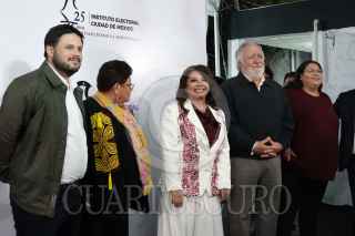 CIUDAD DE MÉXICO, 21ABRIL2024.- Sebastián Ramírez, presidente de Morena; Ernestina Godoy, candidata a senadora; Clara Brugada, candidata a Jefa de Gobierno por Morena; Alejandro Encinas, ex subsecretario de Derechos Humanos, y Citlalli Hernández, secretaria de Morena, durante su llegada al Segundo Debate Chilango en las instalaciones de Grupo MVS. FOTO: GRACIELA LÓPEZ /CUARTOSCURO.COM