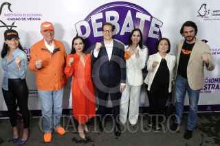 CIUDAD DE MÉXICO, 21ABRIL2024.- Salomón Chertorivski, candidato a Jefe de Gobierno por Movimiento Ciudadano, acompañado de su esposa Yona Frymerman Konigsberg; Dante Delgado, presidente de Movimiento Ciudadano; Sandra Cuevas, candidata a senadora y otros militantes de este partido, durante su salida del Segundo Debate Chilango en las instalaciones del Grupo MVS. FOTO: GRACIELA LÓPEZ /CUARTOSCURO.COM