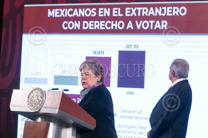 CIUDAD DE MÉXICO, 22ABRIL2024.- Alicia Bárcena, secretario de Relaciones Exteriores, habló sobre las acciones para garantizar el derecho al voto en el extranjero, aclaro que la cancillería a través de sus consulados están apoyando a los migrantes, sobre todo en Estados Unidos, para que puedan obtener su credencial y si poder votar el 2 de junio. FOTO: MOISÉS PABLO/CUARTOSCURO.COM