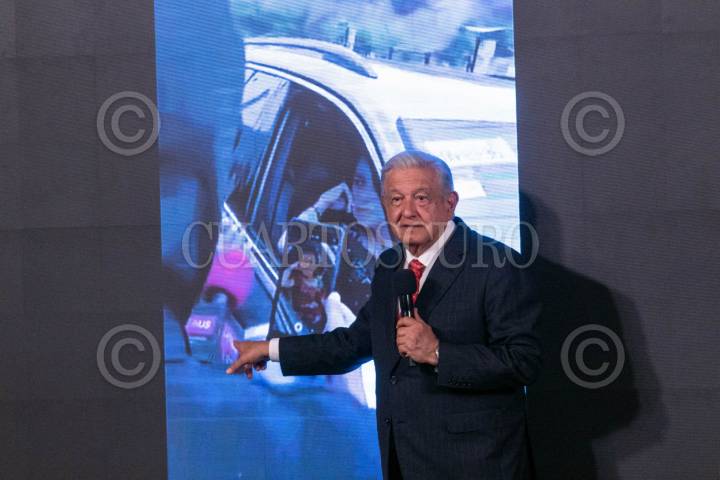 CIUDAD DE MÉXICO, 22ABRIL2024.- Andrés Manuel López Obrador, Presidente de México, habló del bloqueo que padeció ayer la candidata morenista, Claudia Sheinbaum, en Motozintla por parte de unos hombres encapuchados. El mandatario mostró la imagen y señaló que le parece raro que los únicos periodistas que estaban con estos sujetos eran los periodistas de Latinus (un medio de comunicación crítico al su gobierno). FOTO: MOISÉS PABLO/CUARTOSCURO.COM