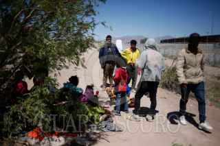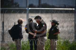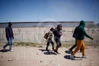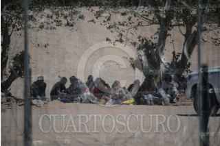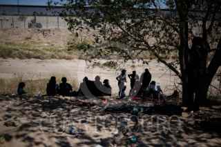 CIUDAD JUÁREZ, CHIHUAHUA, 23ABRIL2024.- Migrantes de diferentes nacionalidades se desplazaron desde la puerta 35A a la Puerta 40 de la línea fronteriza que separa a México de Estados Unidos. En la zona se observó el patrullaje de unidades del Instituto Nacional de Migración y de la Guardia Nacional. FOTO: REY R. JÁUREGUI/ CUARTOSCURO.COM