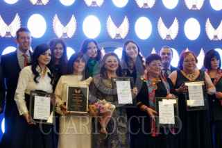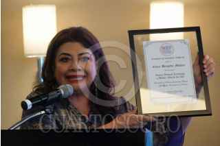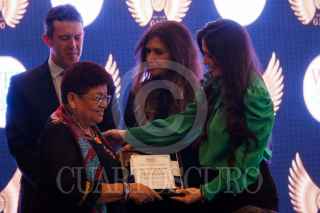 CIUDAD DE MÉXICO, 23ABRIL2024.- Ana María Lomeli, candidata a Diputada Federal por Coyoacán; Clara Brugada, candidata a Jefa de Gobierno, Ernestina Godoy, candidata a senadora, durante la Entrega de Reconocimientos Women Economic Forum realizada en la Torre Mayor de Reforma. FOTO: GRACIELA LÓPEZ /CUARTOSCURO.COM