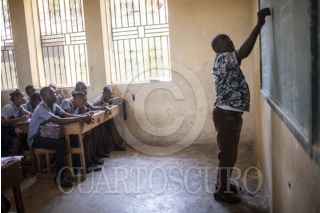 CABO HAITIANO, HAITÍ, 24ABRIL2024.- Las clases continúan con normalidad en la ciudad de Cabo Haitiano. Según el director de la escuela Liceo Nacional Dutty Boukman, Ronald Jules, los últimos meses han llegado decenas de nuevos estudiantes, provenientes de la capital del país, para continuar sus estudios de primaria, los cuales fueron suspendidos por la ola de violencia e inestabilidad que azota la capital. Fundada en 1670 por los colonos franceses, y situada en la costa norte de Haití, la ciudad de Cabo Haitiano, que otrora fue la capital colonial de la isla, es la segunda ciudad más importante de Haití. Los úlitmos meses, miles de haitianos provenientes de Puerto Príncipe han buscado refugio en ella huyendo de la violencia generada por los grupos armado, otros miles han huído del país. De enero a Marzo del presente año, más de 2500 personas han sido asesinadas o heridas fruto de la violencia y disputa de los márgenes urbanos entre dichos grupos y la policía nacional. La inestabilidad política y la violencia urbana que precedía la renuncia, en marzo del presente año, del ex primer ministro Arie Henry e, incluso, el asesinato en julio de 2021 del entonces presidente haitiano, Jovenel Moise, se han recrudecido en los últimos meses. Después de ser escenario de disparos e intentos de apropiación, el aeropuerto principal del país, el de Puerto Príncipe, permanece cerrado desde prinicpios de marzo, los grupos armados han ataco los prinicpales edificios gubernamentales, quemado estaciones de policía, y de las dos mayores prisiones de la capital han sido liberados más de 4,000 reos. Todo esto a la par que las calles de la capital y los caminos de acceso a ella son escenaros de disputa y enfrentamientos, comenzando ya a contarse las víctimas por balas perdidas. FOTO: PEDRO ANZA /CUARTOSCURO.COM