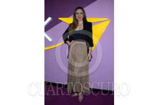 CIUDAD DE MÉXICO, 24ABRIL2024. África Zavala durante el tlaquetazo por inicio de grabaciones de la telenovela "Papás por conveniencia", en Santa Fe. FOTO: EDGAR NEGRETE LIRA/CUARTOSCURO.COM