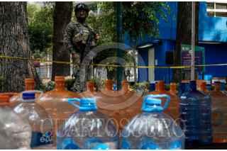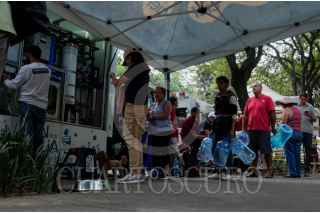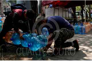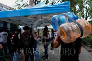 CIUDAD DE MÉXICO, 24ABRIL2024.- Elementos de la Secretaría de Marina (Semar) y de Atención Ciudadana del gobierno capitalino continúan con el reparto de garrafones de agua purificada en las inmediaciones del Parque Alfonso Esparza Oteo de la alcaldía Benito Juárez. Según reportes, la demanda de garrafones ha disminuido en 80% tras el inicio de limpieza de cisternas tras la presencia de agua contaminada por presuntos hidrocarburos. FOTO: GALO CAÑAS/CUARTOSCURO.COM