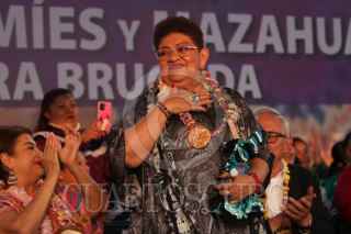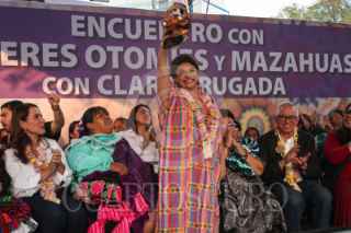 CIUDAD DE MÉXICO, 24ABRIL2024.- Clara Brugada candidata a la jefatura de Gobierno por Morena encabezó encuentro con mujeres Otomíes y Mazahuas en la glorieta de insurgentes. FOTO: ANDREA MURCIA /CUARTOSCURO.COM