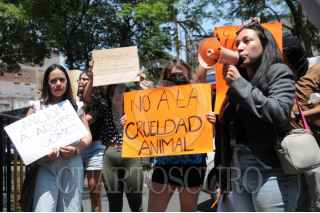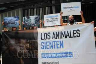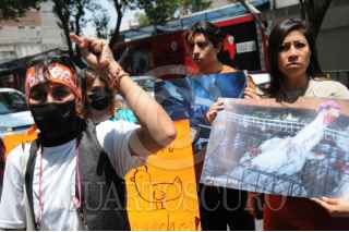 CIUDAD DE MÉXICO, 25ABRIL2024.- Los activistas se manifestaron afuera del Senado por el sacrificio de una gallina el día de ayer dentro de las instalaciones de la Cámara Alta. FOTO: DANIEL AUGUSTO /CUARTOSCURO.COM