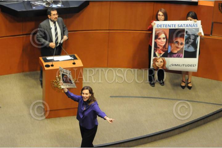 CIUDAD DE MÉXICO, 25ABRIL2024.- Lilly Telléz, senadora del PAN, interrumpió al morenista César Craviotto, durante su participación en la sesión del Senado en la discusión de la reforma a las Afores. FOTO: DANIEL AUGUSTO /CUARTOSCURO.COM