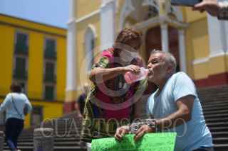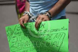 XALAPA, VERACRUZ, 25ABRIL2024.- El maestro jubilado Juan Moctezuma López se encadenó para ejercer presión ante el gobierno y le paguen el seguro de vida que le deben. Hace una década fue pensionado por invalidez pero lo único que recibe son mil 500 pesos. FOTO: YERANIA ROLÓN/CUARTOSCURO.COM