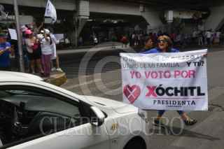 CIUDAD DE MÉXICO, 26ABRIL2024.- Simpatizantes de Xóchitl Gálvez, candidata a la Presidencia de la República por la Coalición Fuerza y Corazón por México, realizaron una "pega de microperforados" en el cruce de las avenidas Universidad y Río Churubusco. FOTO: MARIO JASSO/CUARTOSCURO.COM