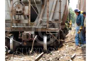 MÉXICO D.F. 16JULIO2007.-En la avenida Poniente 134 y Norte 35 de la colonia Vallejo un tren de carga que se descarrio por el mal estado de las vías fue puesto en circulación normal después de varias horas de trabajo, el descarrilamiento no causo lecionados. FOTO: PEDRO MARRUFO/CUARTOSCURO.COM