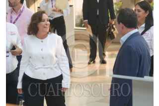XALAPA, VERACRUZ, 27ABRL2024.- La candidata de Morena, Rocío Nahle García, negó el saludo al candidato de “Fuerza y Corazón por Veracruz”, José Yunes previo al arranque del debate por la gubernatura. FOTO: YERANIA ROLÓN/CUARTOSCURO.COM