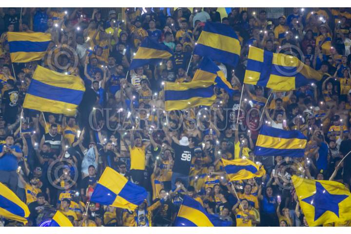 SAN NICOLÁS DE LOS GARZA, NUEVO LEÓN, 27ABRIL2024.- Aficionados de Tigres, apoyan a su equipo en la tribuna ante Xolos de Tijuana, en el estadio Universitario, partido correspondiente a la jornada 17 de la Clausura 2024, Liga MX. Marcador Final: Tigres: 4 - Xolos: 1. FOTO: GABRIELA PÉREZ MONTIEL / CUARTOSCURO.COM