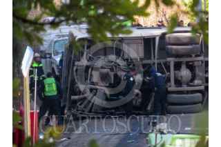 MALINALCO, ESTADO DE MÉXICO, 28ABRIL2024.- Se registra accidente de un camión de peregrinos procedente de San Luis de La Paz, Guanajuato, en la carretera Capulín-Chalma, resultando 14 personas muertas y 31 más lesionadas, cuerpos de emergencia acudieron al lugar y se encuentra cerrada la carretera. FOTO: CRISANTA ESPINOSA AGUILAR /CUARTOSCURO.COM