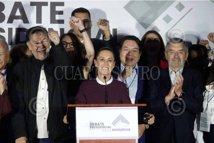 CIUDAD DE MÉXICO, 28ABRIL2024.- Claudia Sheinbaum, candidata a la presidencia por Morena, durante su salida en el Segundo Debate Presidencial en las instalaciones de Estudios Churubusco. FOTO: GRACIELA LÓPEZ /CUARTOSCURO.COM