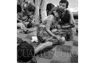 MANAGUA, NICARAGUA.17DEJULIO.2007.- (ARCHIVO) 28 AÑOS DE LA REVOLUCION DE NICARAGUA. El próximo jueves 19 de julio, se cumplen 18 años de que el Frente Sandinista de Liberación Nacional (FSLN) entrará triunfante a la capital después de derrotar al ejercito de Anastacio Somoza cuya dinastía, iniciada por su padre, tenía ya más de 40 años en el poder en el país. La foto titulada El Balazo, una mujer con orificio de bala en el brazo en el barrio Las Americas al sur de la capital, durante un bombardeo del ejército a la población civil. FOTO: PEDRO VALTIERRA/CUARTOSCURO.COM