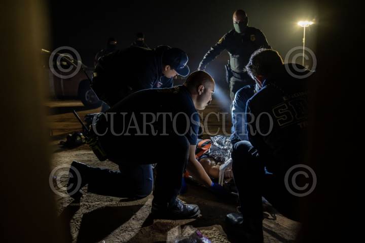 TIJUANA BAJA CALIFORNIA, 30ABRIL2024.- Tres mujeres migrantes de origen ecuatoriano y colombiano, cayeron del muro fronterizo tras intentar cruzar a Estados Unidos durante la noche del lunes 29 de abril. Paramédicos de la Cruz Roja Mexicana recibieron tres reportes sobre el incidente a través del numero de emergencias, donde los reportantes expresaban que las mujeres se encontraban a la altura de la colonia El Soler. Tras llegar al lugar sobre la Avenida Internacional, frente a la gasera Silza, encontraron a las mujeres sobre el suelo ya del lado americano con algunas lesiones y fracturas, una de ellas en estado grave. La mujer colombiana pudo acercarse al muro y sacar su pie para ser auxiliada por paramédicos mexicanos, sin embargo a las otras dos mujeres ecuatorianas que cayeron a unos metros del muro no les fue posible acercarse por sus lesiones. Después de mas de 40 minutos de espera, elementos de Border Patrol y paramédicos llegaron al lugar para atender a las migrantes desde el lado americano para después trasladarlas a bordo de unidades tipo Pick up de la patrulla fronteriza. FOTO: OMAR MARTÍNEZ/CUARTOSCURO.COM