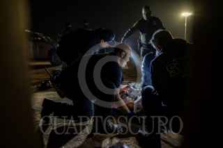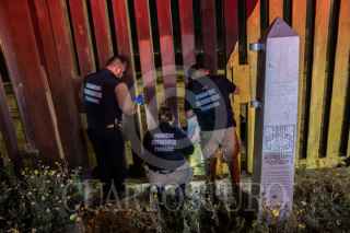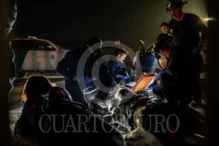 TIJUANA BAJA CALIFORNIA, 30ABRIL2024.- Tres mujeres migrantes de origen ecuatoriano y colombiano, cayeron del muro fronterizo tras intentar cruzar a Estados Unidos durante la noche del lunes 29 de abril. Paramédicos de la Cruz Roja Mexicana recibieron tres reportes sobre el incidente a través del numero de emergencias, donde los reportantes expresaban que las mujeres se encontraban a la altura de la colonia El Soler. Tras llegar al lugar sobre la Avenida Internacional, frente a la gasera Silza, encontraron a las mujeres sobre el suelo ya del lado americano con algunas lesiones y fracturas, una de ellas en estado grave. La mujer colombiana pudo acercarse al muro y sacar su pie para ser auxiliada por paramédicos mexicanos, sin embargo a las otras dos mujeres ecuatorianas que cayeron a unos metros del muro no les fue posible acercarse por sus lesiones. Después de mas de 40 minutos de espera, elementos de Border Patrol y paramédicos llegaron al lugar para atender a las migrantes desde el lado americano para después trasladarlas a bordo de unidades tipo Pick up de la patrulla fronteriza. FOTO: OMAR MARTÍNEZ/CUARTOSCURO.COM
