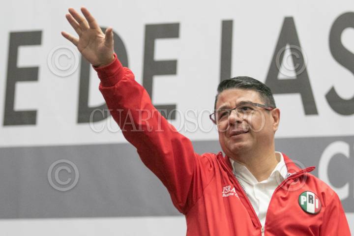 CIUDAD DE MÉXICO, 30ABRIL2024.- Israel Betanzos Cortés, líder del PRI en la Ciudad de México, durante el banderazo de salida de las brigadas de activistas de promoción del voto del PRI. FOTO: MOISES PABLO/CUARTOSCURO.COM