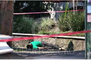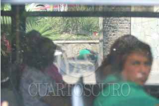 CUERNAVACA, MORELOS, 30ABRIL2024.- Un hombre fue asesinado esta mañana a los pies del monumento a la Madre, en el centro de la ciudad. Presuntamente el hombre que vivía en situación de calle riño con otro que le quito la vida. En la imagen unos pasajeros de una ruta del autotransporte observan la escena del crimen. FOTO MARGARITO PÉREZ RETANA/CUARTOSCURO.COM