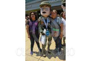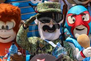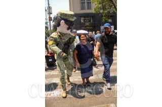 CIUDAD DE MÉXICO. 30ABEIL2024.- Botargas de la Secretaria de la defensa nacional conviven con chicos y grandes en la calle de Madero en el primer cuadro de la Ciudad. FOTO: VICTORIA VALTIERRA/CUARTOSCURO.COM