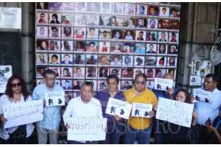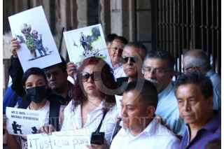 CUERNAVACA, MORELOS, 30ABRIL2024.- En el tercer día de protestas del gremio periodístico de Morelos, reporteros, periodistas, camarógrafos y fotógrafos, exigieron Samuel Sotelo, gobernador interino, una reunión para exponer el caso del secuestro y posterior asesinato del periodista y productor Roberto Carlos Figueroa. Los representantes de los medios de comunicación no fueron recibidos aduciendo una agenda apretada del gobernador interino, por lo cual tuvieron que cerrar la calle Galeana, ubicada detrás del Palacio de Gobierno a fin de ser escuchados. FOTO: MARGARITO PÉREZ RETANA/CUARTOSCURO.COM